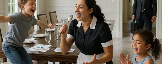 Even though Rosa, their young housekeeper, was quietly present, the home still echoed with loneliness. Gentle and caring, Rosa often went unnoticed by Adrian, but to Ethan and Lily, she meant the world: a comforting ear, a warm smile, and tenderness filling the void left by their mother’s absence.