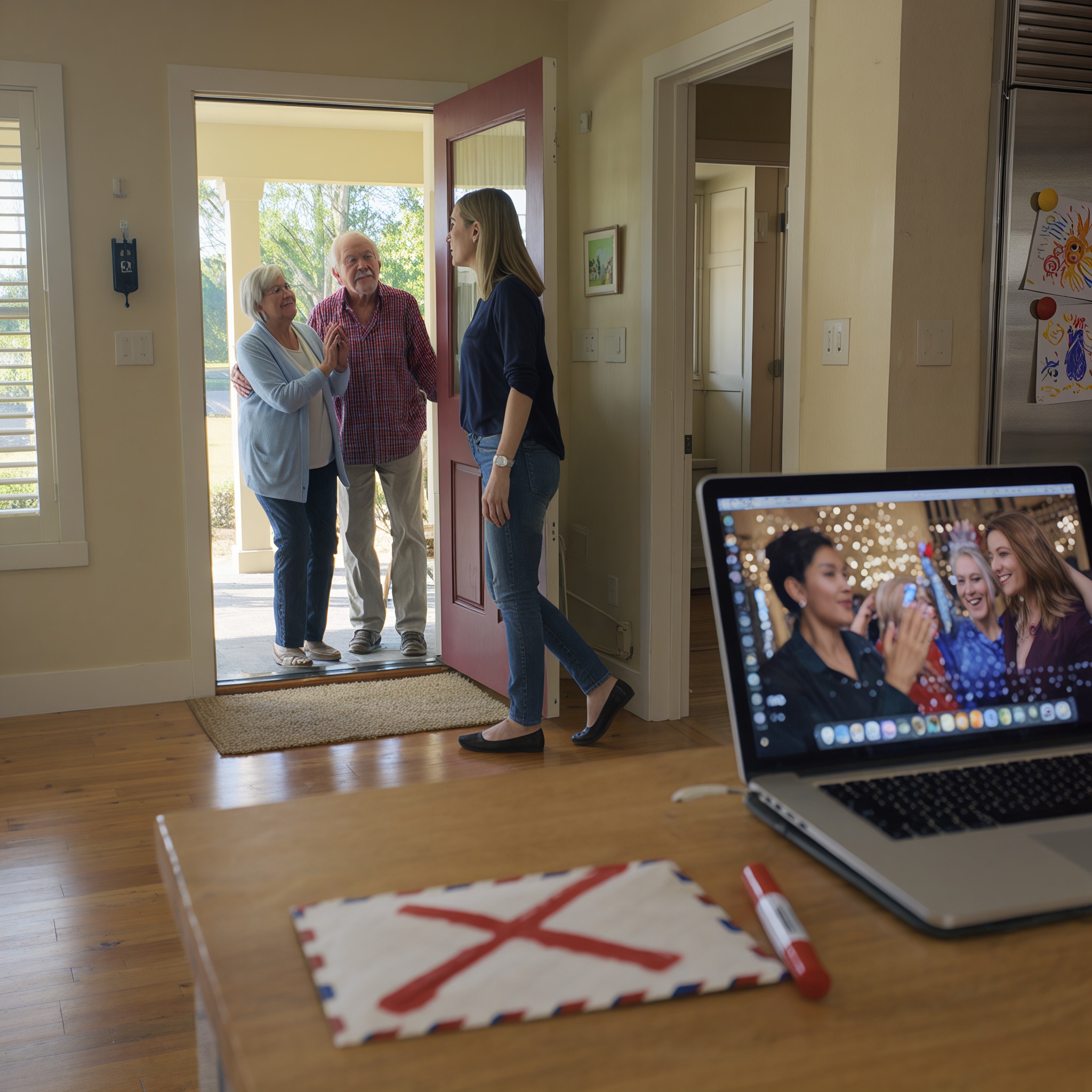 - Emma’s friends arrived, filling the home with laughter and cheer.