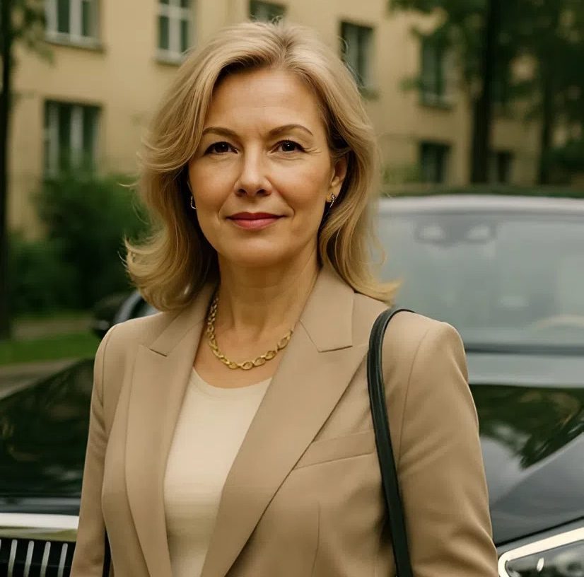 Katalin stood beneath the late evening sky, where twilight was finally giving way to the deeper hues of night. The air was heavy with the scent of clipped hedges and expensive jasmine, a fragrance she remembered well—too well.