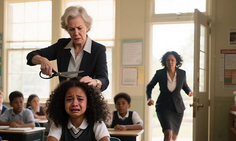Before Maya could react, Mrs. Jenkins gripped a handful of her curls and snipped.