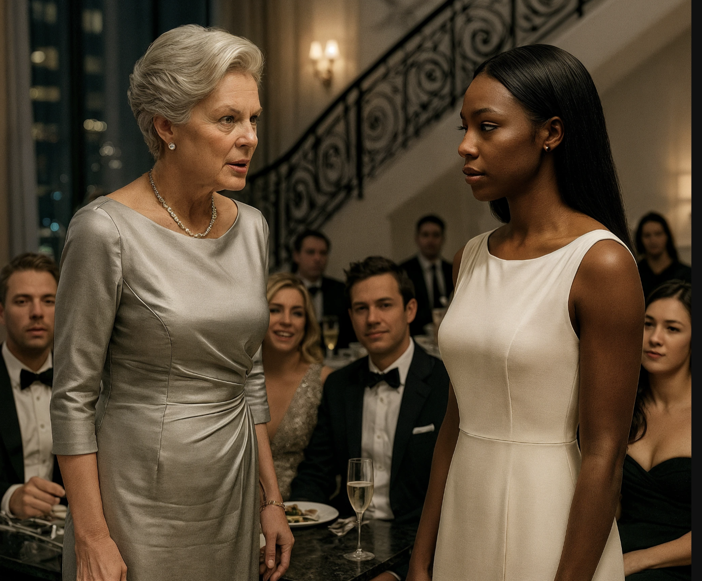 The target of her ire was a tall Black woman in an ivory gown, whose composed demeanor was the only shield against humiliation.