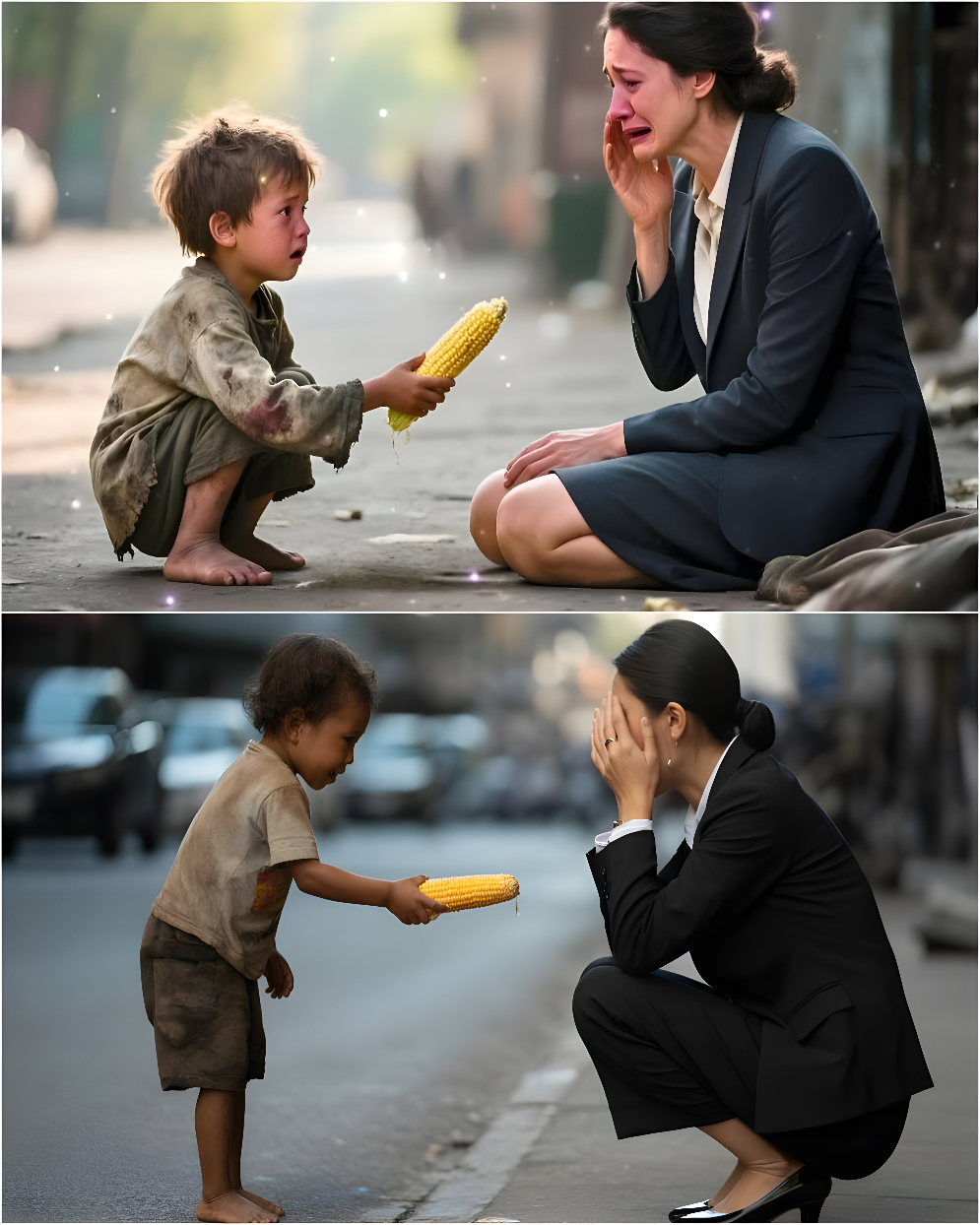 Annoyance pricked at her—surely he was asking for money. She was about to dig through her purse for a few coins when his next words struck her like a punch to the gut, as he extended a dirty hand towards her. In his palm lay an ear of corn, half-eaten yet still warm. “Do you cry from hunger too, ma’am?” He looked up at her with wide, earnest eyes full of understanding rather than pity. A stark contrast to the judgmental gazes of others she had faced.
