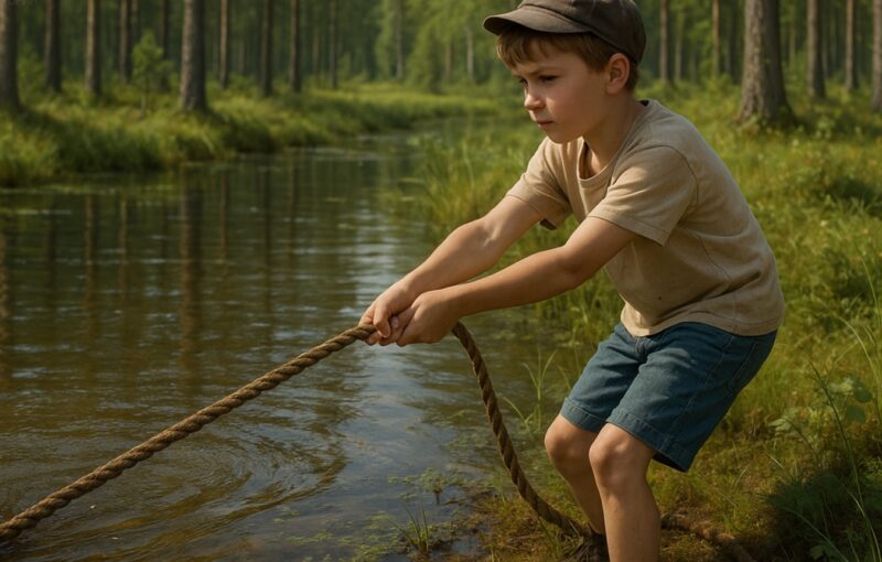 The others stepped back, uneasy. “Don’t touch it,” one boy whispered. “It might be dangerous.” But Ilya, with the boundless courage of childhood, reached out anyway. The rope was wet and cold, heavy with the weight of the water.