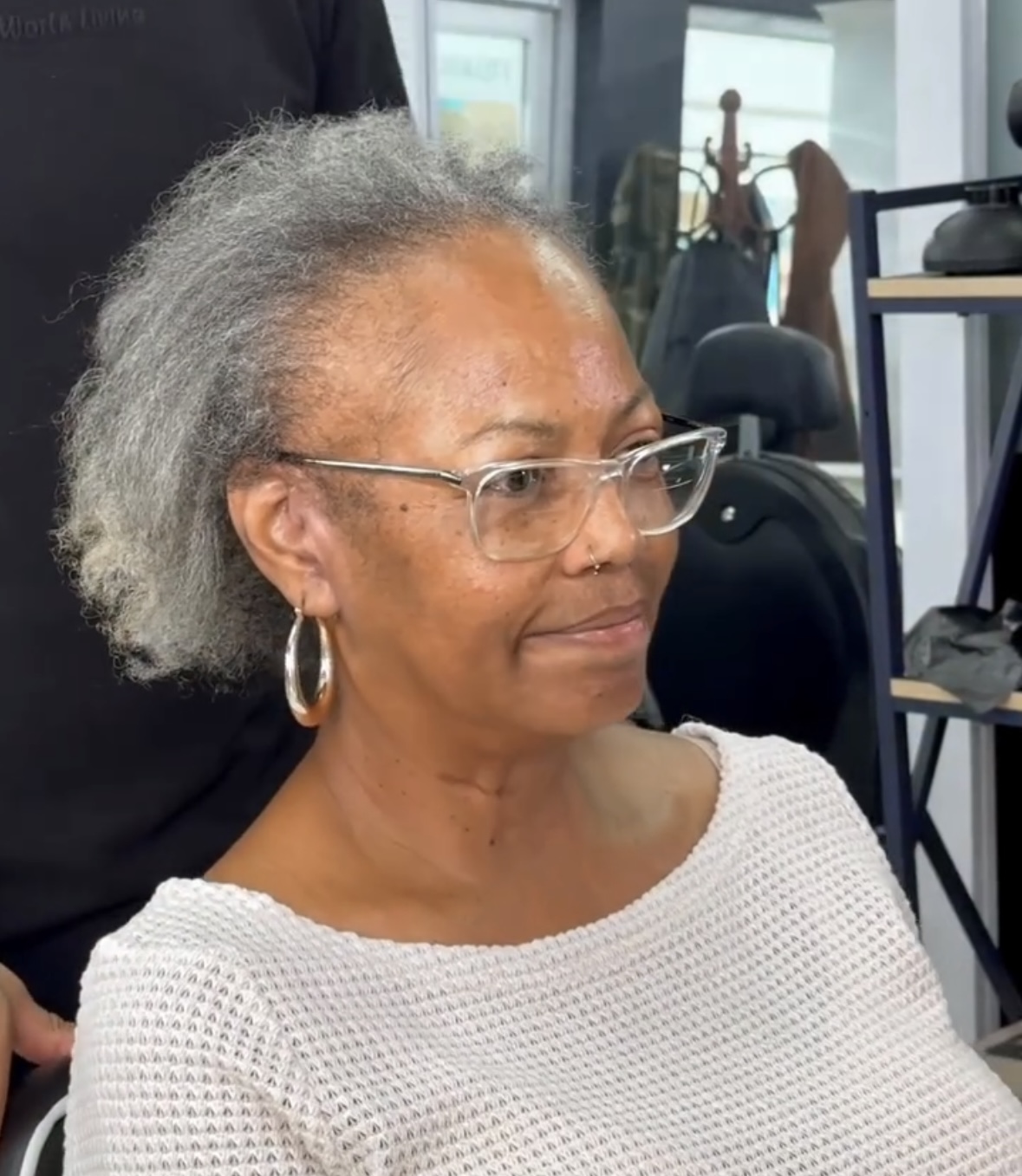 The stylist examined her hair carefully, paying attention to every detail — texture, shape, health, volume. It felt comforting to have someone listen, really listen, to what she had been fighting for so long. For the first time in years, she felt seen.