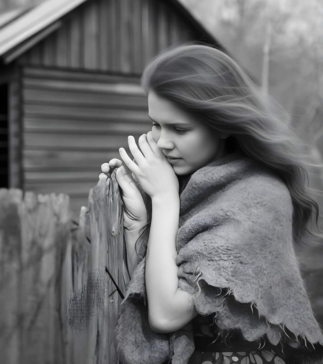Despair, black and bottomless, engulfed her. What an indelible disgrace! How could she face the villagers? Her bewildered husband shifted his gaze between his sobbing wife and his frightened stepdaughter. Gently, he took the girl by the elbow and led her out into the yard. What they discussed under the cloak of impending night, the woman could not hear, only seeing their anxious and conflicted faces through the window.